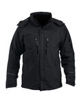 - Padded softshell jacket with detachable hood and snow lock.